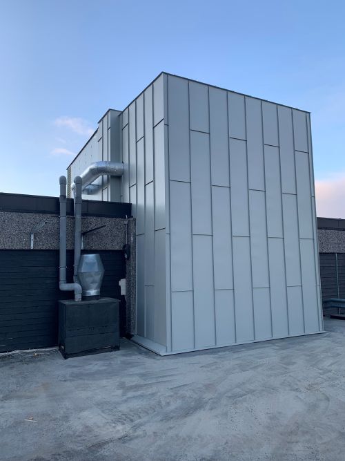 Vi utfører også båndtekking som er en gammel tradisjon med metallplater som blir falset sammen med dobbelt fals. Dette gir 100% tette skjøter.