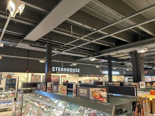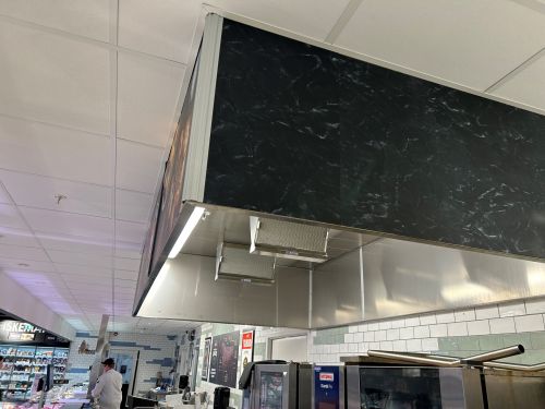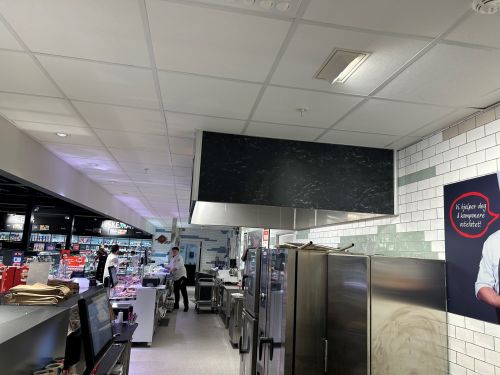 Vi har levert og montert vår egen Angus kjøkkenhette i ferskvareavdelingen på Meny Liertoppen. Butikken ønsket å kle kjøkkenhetten med egen reklame og det ble veldig bra! Flott og delikat butikk som vi og kundene har lyst til å handle ferskvarer hos.