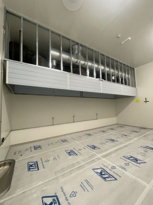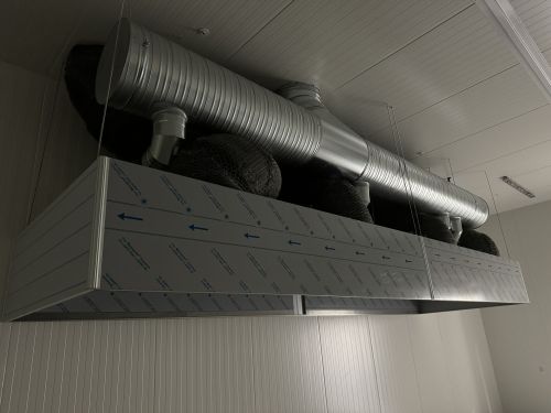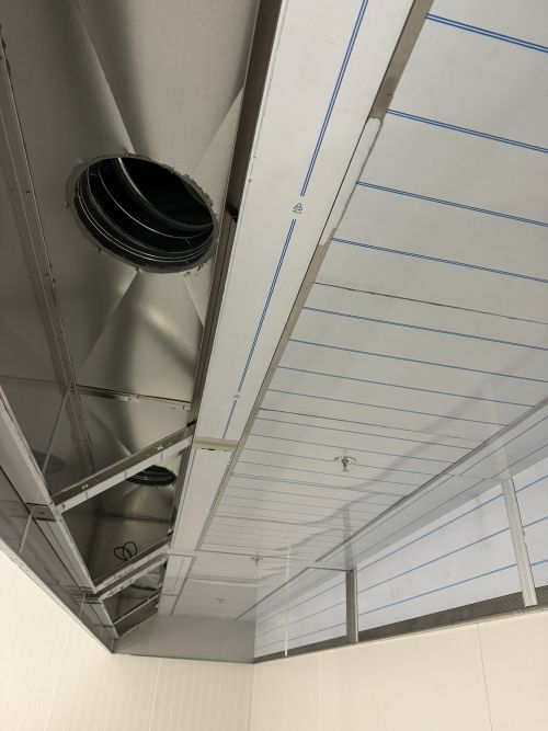 For en kunde har vi levert en Angus kjøkkenhette til et storkjøkken som vi kledde inn med aluminiumsplater for bedre hygiene, mindre støv og lettere rengjøring, etter kundens ønsker. I ene enden er det en inspeksjonsluke så det er enkelt å komme til kjøkkenhetta og ventilasjon.